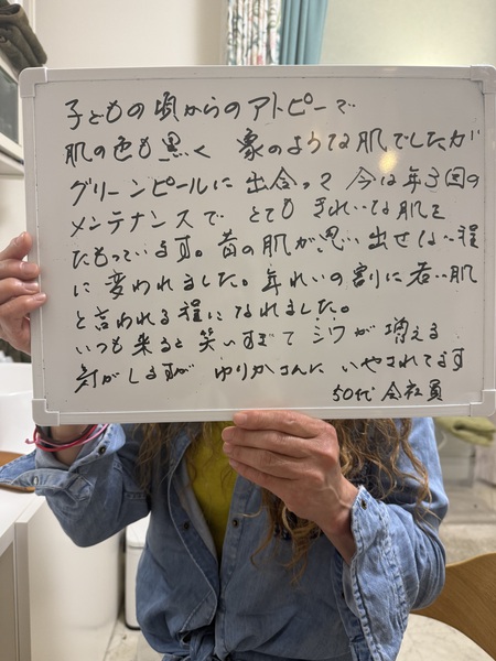 3回目のグリーンピールを終えた頃、「やっと人間の肌になれました」と笑顔でおっしゃったあの言葉は、今でも忘れられません。